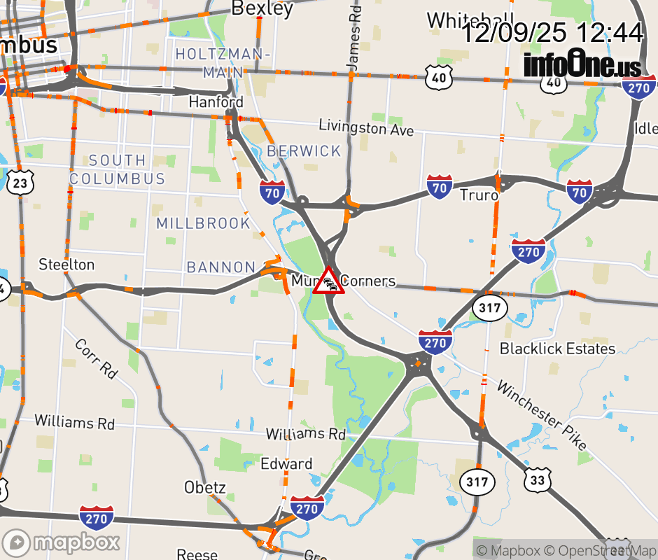 Ramp US-33 West to SR-104 West/Refugee Rd CLOSED because of debris on roadway. ![]() |