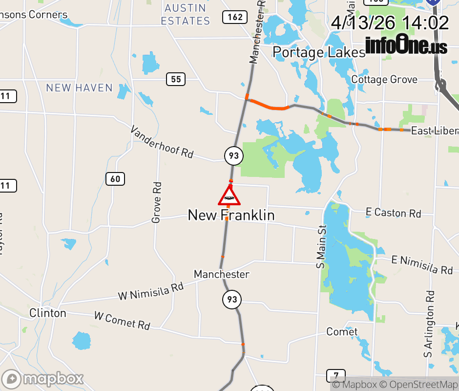Expect lane closures on SR-93 South beyond Renninger Rd, due to a crash. Expect lane closures on SR-93 North beyond Homeland Dr, due to a crash. ![]() |