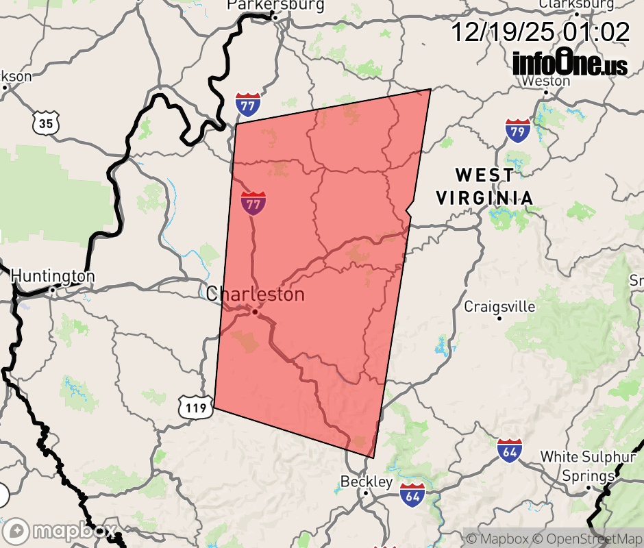 Canceled 12/19/25 1:45 AM Special Weather Statement issued December 19 at 1:01AM EST by NWS Charleston WV At 100 AM EST, Doppler radar was tracking gusty showers along a line extending from near Sandyville to near Madison. Movement was southeast at 40 mph. HAZARD...Wind gusts up to 50 mph. SOURCE...Radar indicated. IMPACT...Gusty winds could knock down tree limbs and blow around unsecured objects. Locations impacted include... Charleston, Ripley, Madison, Spencer, Grantsville, Clay, Jefferson, South Charleston, Dunbar, Oak Hill, Sissonville, Montgomery, Chesapeake, Marmet, Mount Hope, Ansted, Belle, Clendenin, Cedar Grove, and East Bank. This includes the following highways... Interstate 79 between mile markers 1 and 42. Interstate 77 in West Virginia between mile markers 96 and 135, and near mile marker 147. Interstate 64 in West Virginia between mile markers 51 and 57. West Virginia Turnpike between mile markers 55 and 95. Route 119 between mile markers 71 and 80. Route 19 between mile markers 6 and 11, and near mile marker 13. ![]() |