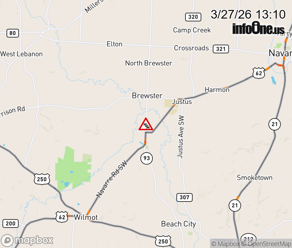 All lanes are closed on SR-93 North beyond Navarre Rd Sw, due to flooding. All lanes are closed on SR-93 South beyond Hillview Ct Sw, due to flooding. Updated: Fri 3/27/26 1:10 PM EDT ![]() Updated: Fri 3/27/26 1:10 PM EDT |