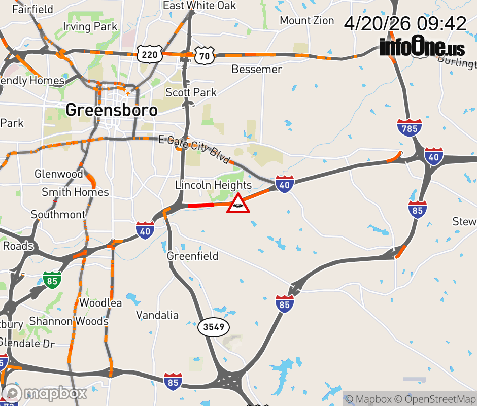 Location: I-40E at MM 223, NC Vehicle Crash.