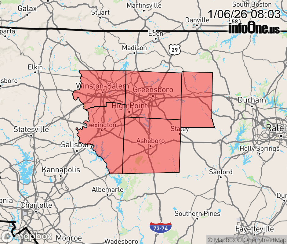 Canceled 1/6/26 9:22 AM Dense Fog Advisory issued January 6 at 8:01AM EST until January 6 at 10:00AM EST by NWS Raleigh NC * WHAT... Visibility less than one mile in dense fog. * WHERE... Alamance, Davidson, Forsyth, Guilford, and Randolph Counties. * WHEN... Until 10 AM EST this morning. * IMPACTS... Low visibility could make driving conditions hazardous. ![]() |
