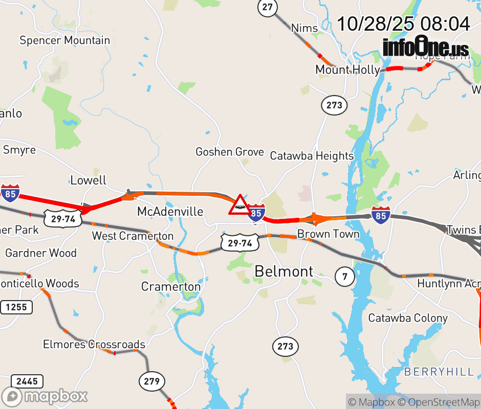 The two left lanes are closed past Exit 26 (Belmont -Mt Holly Rd.) Updated: Tue 10/28/25 8:04 AM EDT ![]() Updated: Tue 10/28/25 8:04 AM EDT |