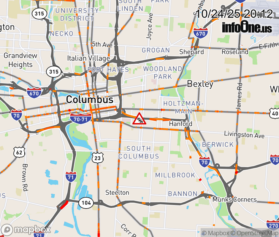 The 2 right lanes are blocked on I-70 East beyond E Fulton St, due to repairs/maintenance. Updated: Fri 10/24/25 8:12 PM EDT ![]() Updated: Fri 10/24/25 8:12 PM EDT |