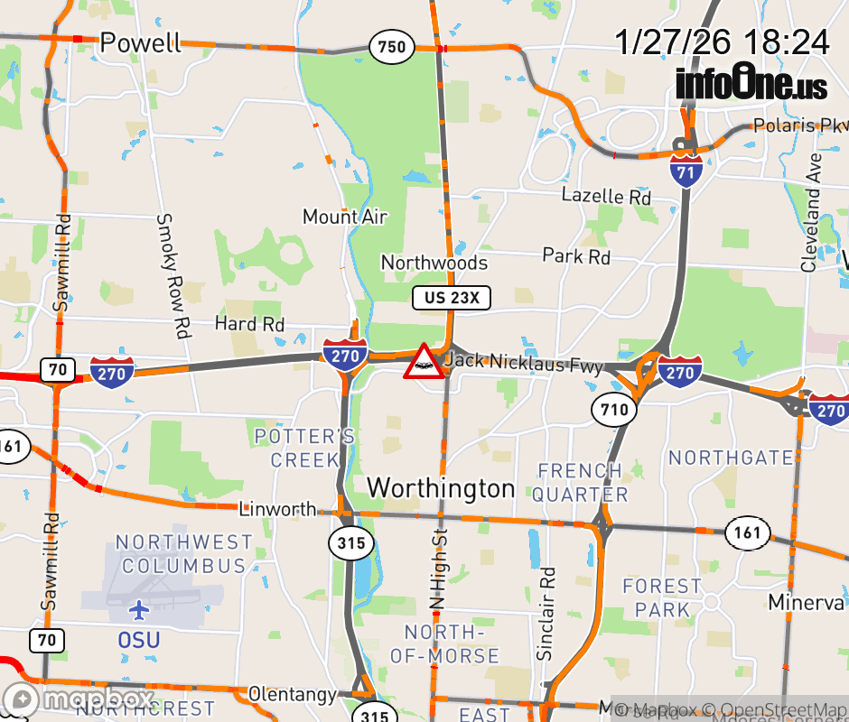 Expect lane closures on Ramp I-270 East to US-23 (Northside), due to a crash. ![]() |