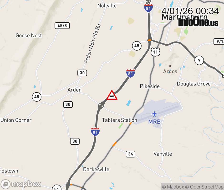 Vehicle Crash on I-81S at Mile Marker 9.0. ![]() |