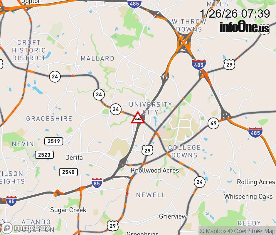 The ramp lane is closed on W. W.T. Harris Blvd.. ![]() |