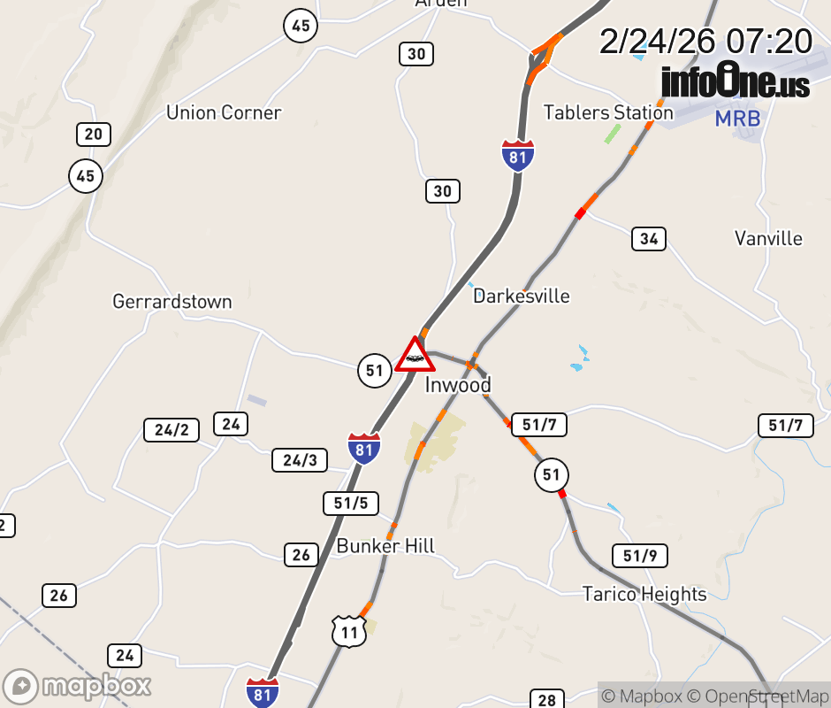 Vehicle Crash on WV-51 (Gerrardstown Rd/I-81 Ramps). ![]() |