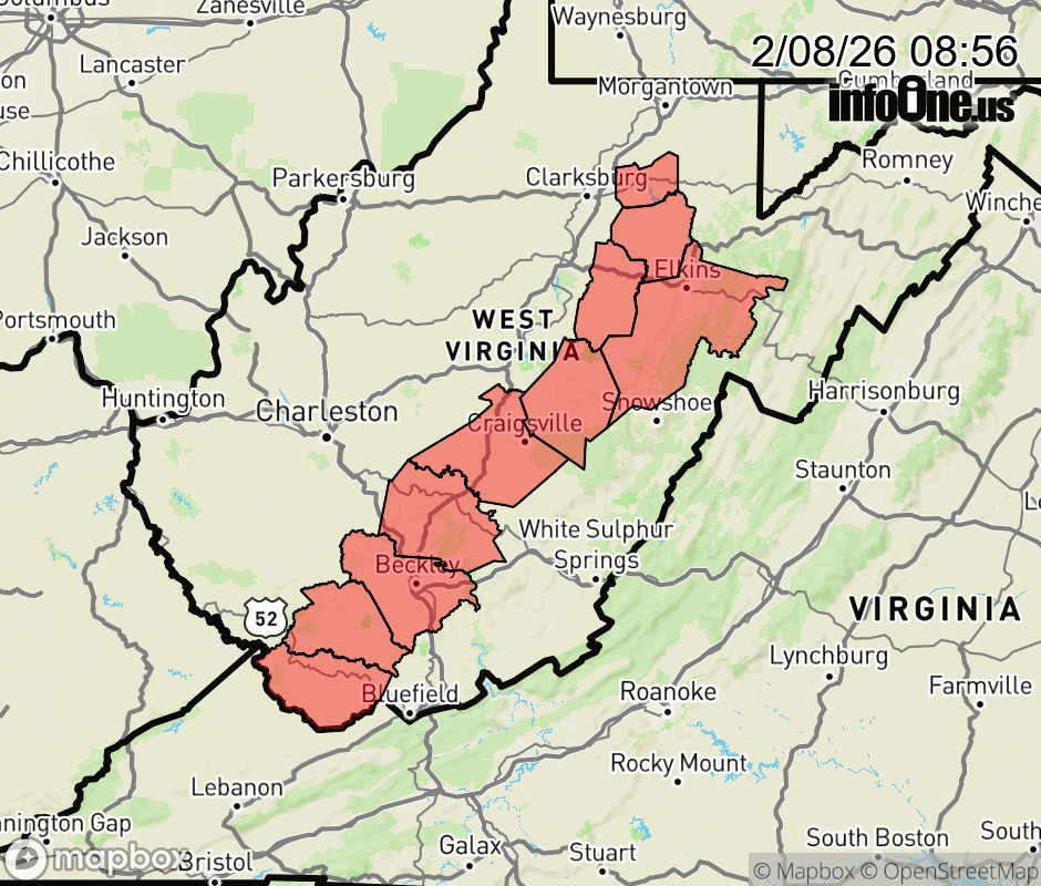 Canceled 2/8/26 9:00 AM Cold Weather Advisory issued February 8 at 8:55AM EST until February 8 at 9:00AM EST by NWS Charleston WV Wind chills have risen above advisory thresholds this morning and are anticipated to continue to rise throughout the day. Therefore, the advisory will be allowed to expire at 9 AM. ![]() |