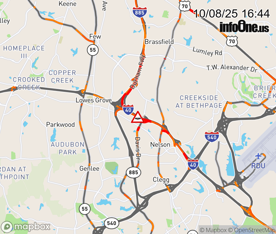 The right shoulder is closed near Exit 279 B(I-885). ![]() |