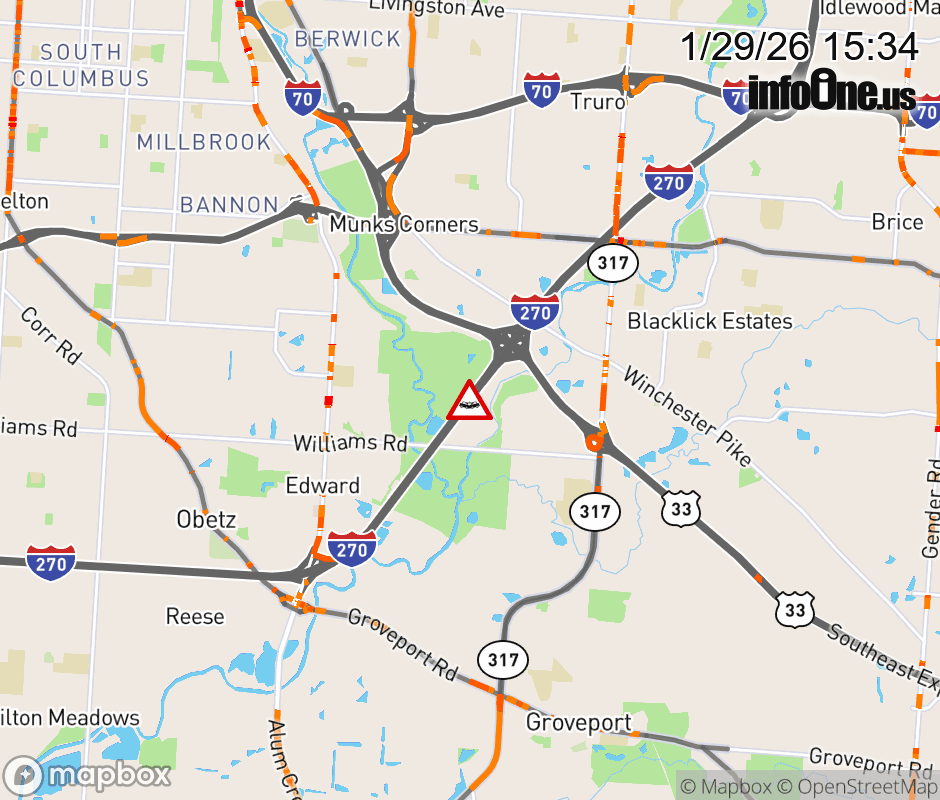 The left lane is blocked on I-270 North beyond Alum Creek Dr, due to a crash. ![]() |