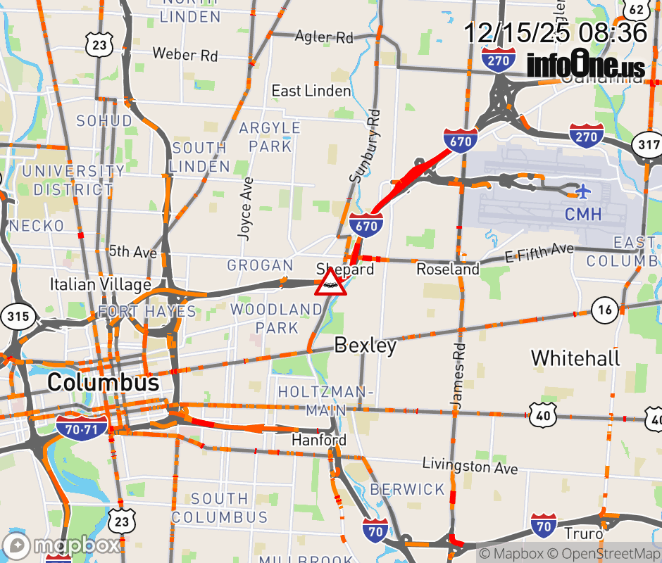 The right shoulder is blocked on I-670 West beyond US-62/Fifth Ave, due to a crash. Updated: Mon 12/15/25 8:36 AM EST ![]() Updated: Mon 12/15/25 8:36 AM EST |