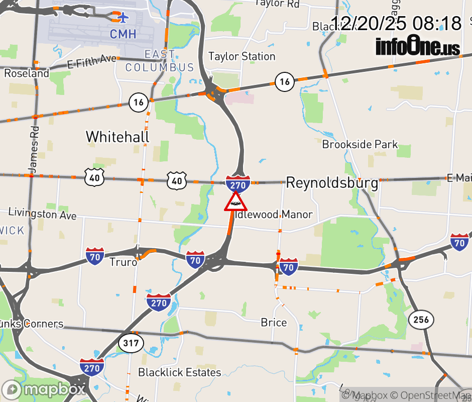 The left lane is blocked on I-270 North Collector at US-40/E Main St East, due to a crash. ![]() Updated: Sat 12/20/25 8:18 AM EST |