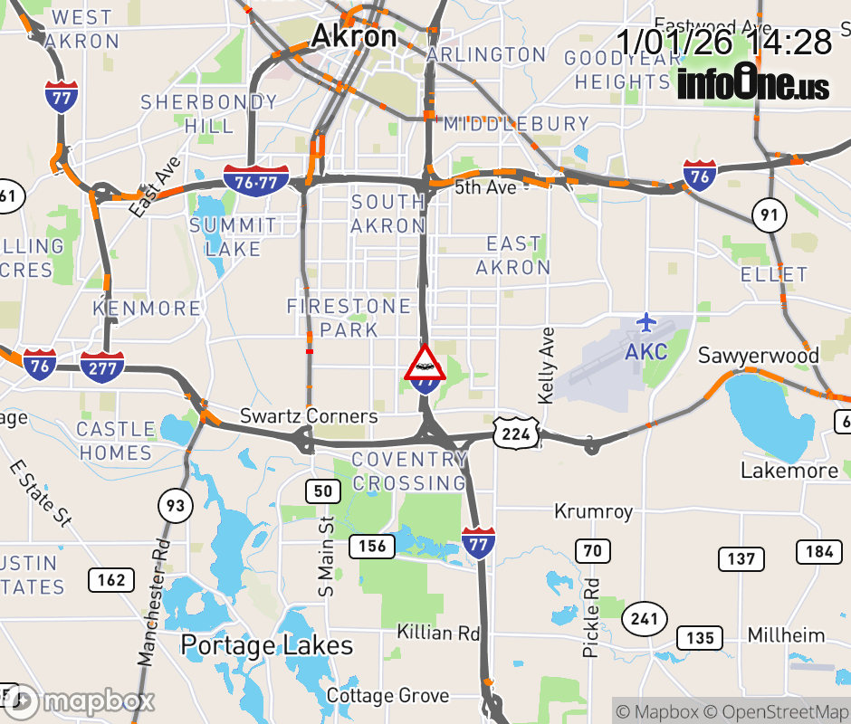 The left lane is blocked on I-77 North at SR-764/ Wilbeth Rd/Waterloo Rd, due to a crash. ![]() |