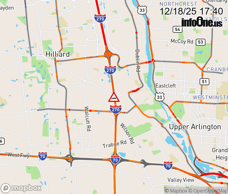 The left shoulder is blocked on I-270 South beyond Cemetery Rd/Fishinger Rd, due to a disabled vehicle. Updated: Thu 12/18/25 5:40 PM EST ![]() Updated: Thu 12/18/25 5:40 PM EST |