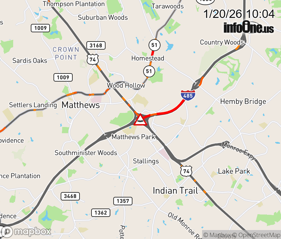 The left lane is closed at Exit 51 (US 74 /Independence Blvd). ![]() |