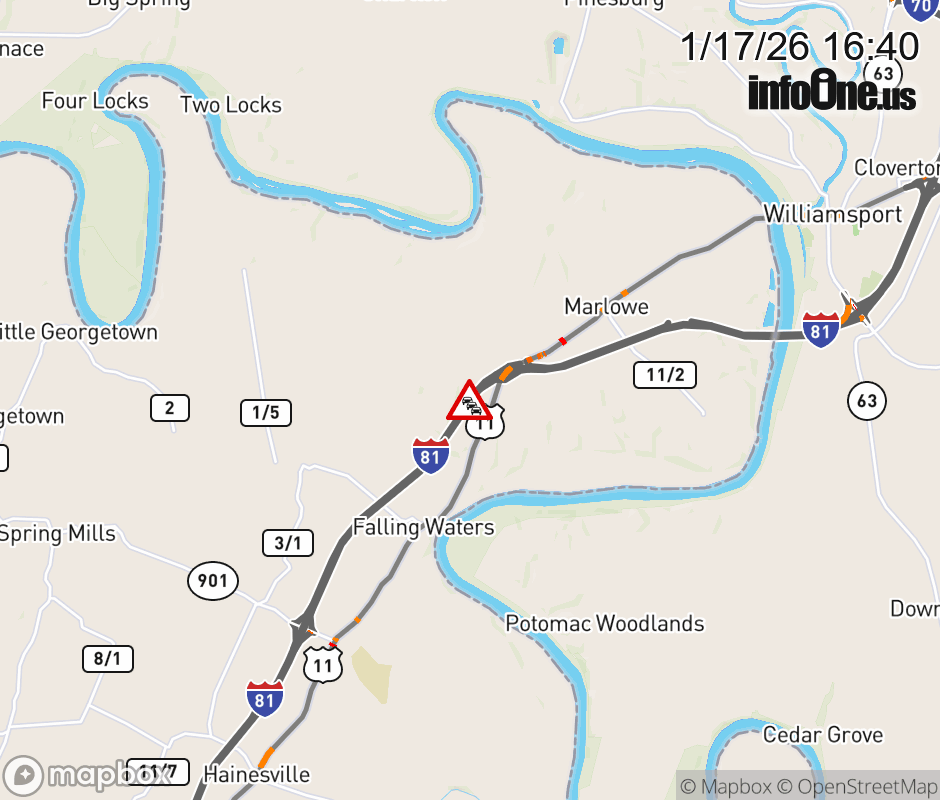 Vehicle Fire on I-81S at Mile Marker 23.0. Updated: Sat 1/17/26 4:40 PM EST ![]() Updated: Sat 1/17/26 4:40 PM EST |