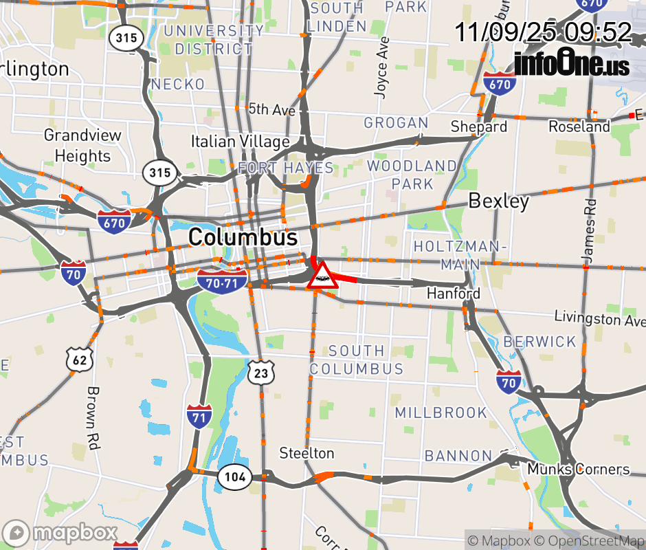 The right shoulder is blocked on Ramp I-71 South to I-70 East, due to a crash. Updated: Sun 11/9/25 9:52 AM EST ![]() Updated: Sun 11/9/25 9:52 AM EST |
