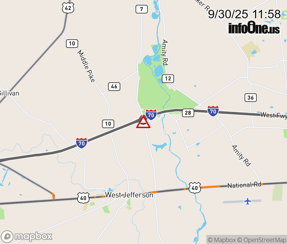 Ramp to I-70 from SR-142 West is blocked due to crash. ![]() |