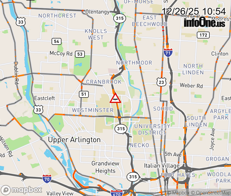 The left lane is blocked on SR-315 North at Ackerman Rd, due to a crash. Updated: Fri 12/26/25 10:54 AM EST ![]() Updated: Fri 12/26/25 10:54 AM EST |