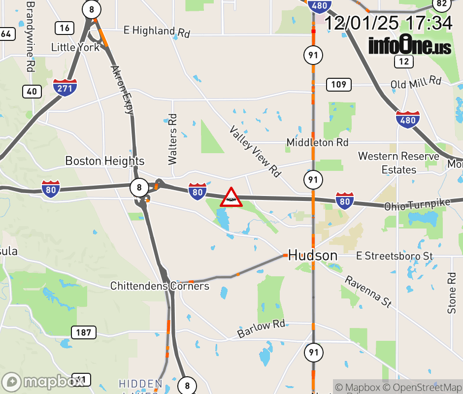 Expect lane closures on I-80 West (Ohio Turnpike) beyond I-480/SR-14, due to a crash. ![]() |