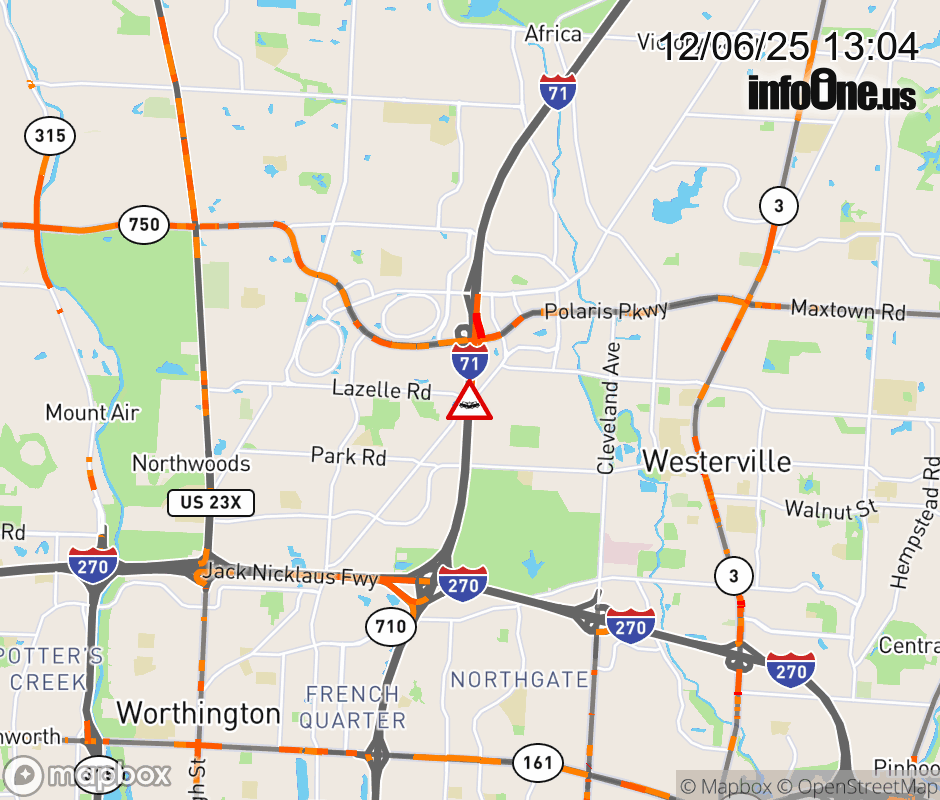 Ramp to Polaris Pkwy/Gemini Place from I-71 North is blocked due to crash. ![]() |