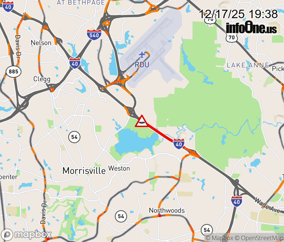 The right shoulder is closed before Exit 285(Aviation Pkwy). Updated: Wed 12/17/25 7:38 PM EST ![]() Updated: Wed 12/17/25 7:38 PM EST |