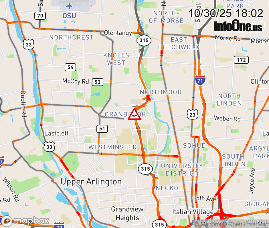 The left shoulder is blocked on SR-315 North at N Broadway/Olentangy River Rd, due to a disabled vehicle. ![]() |
