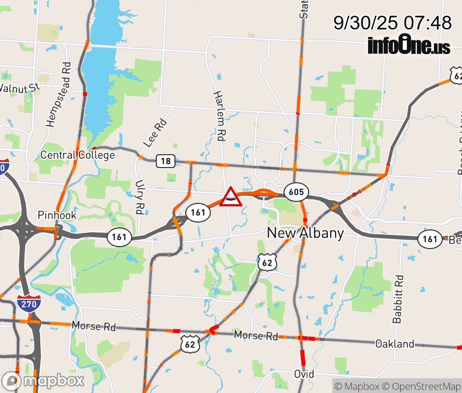 The left shoulder is blocked on SR-161 West beyond New Albany Rd, due to a crash. ![]() |
