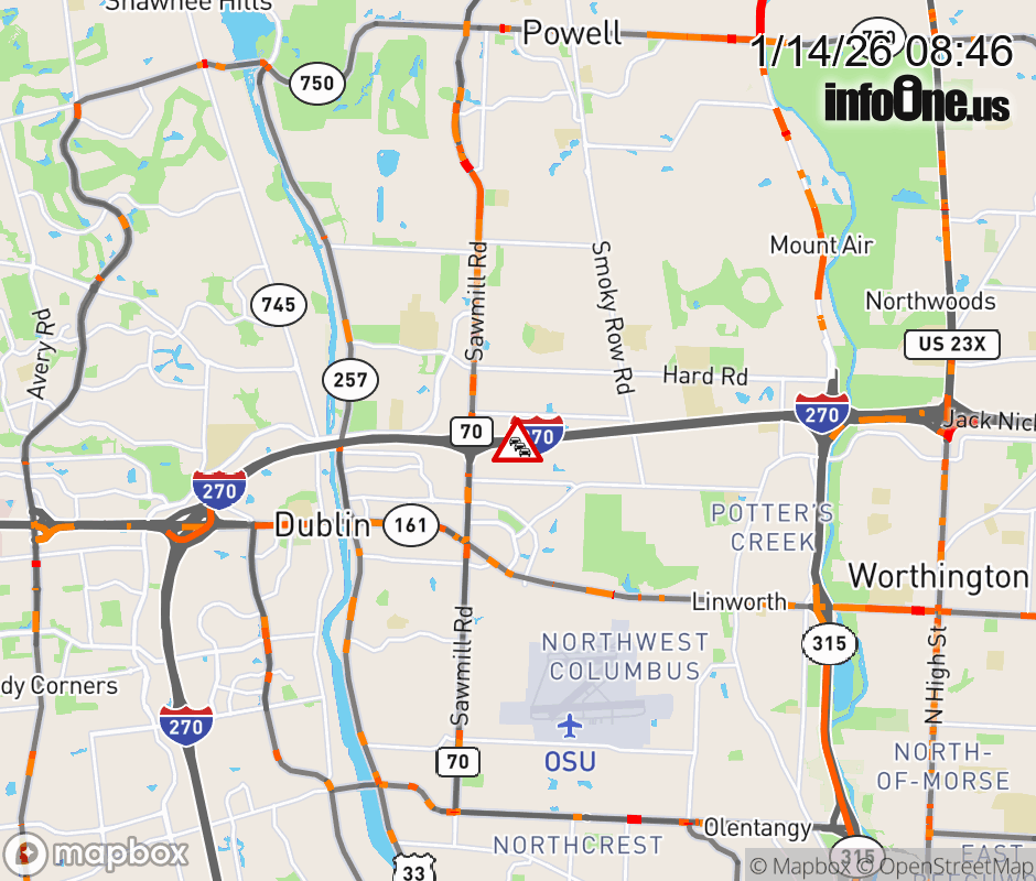 Expect lane closures on I-270 West at Sawmill Rd, due to debris on roadway. ![]() |
