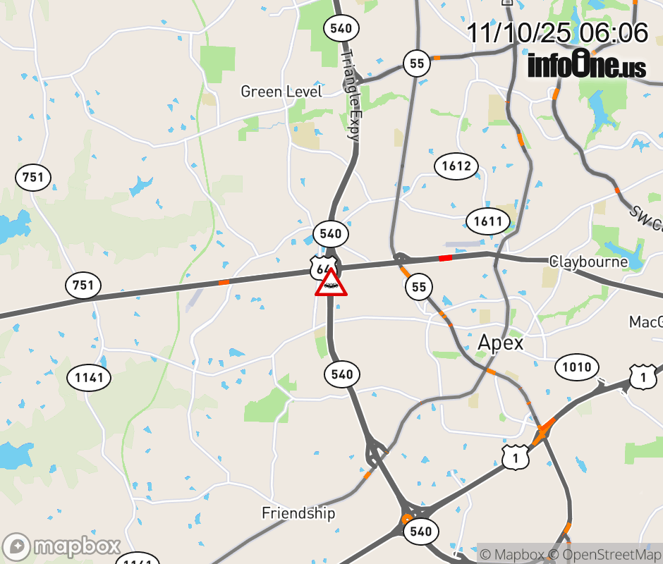 The right shoulder is closed near Exit 59 (Olive Chapel Rd). ![]() |