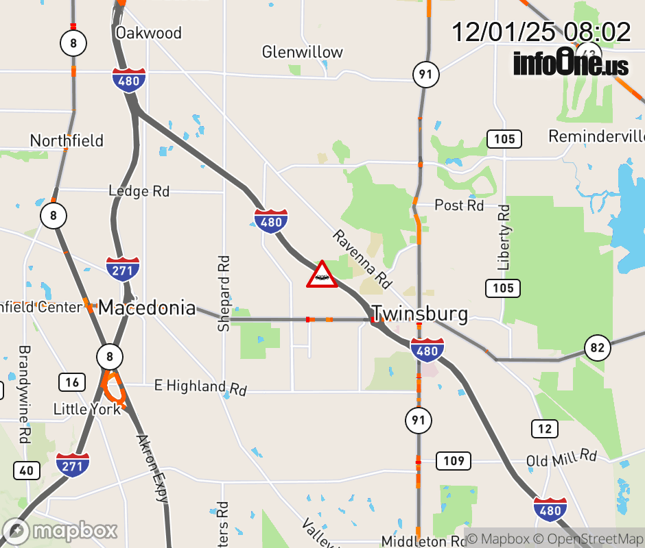 Expect lane closures on I-480/SR-14 East beyond I-271, due to a crash. ![]() |