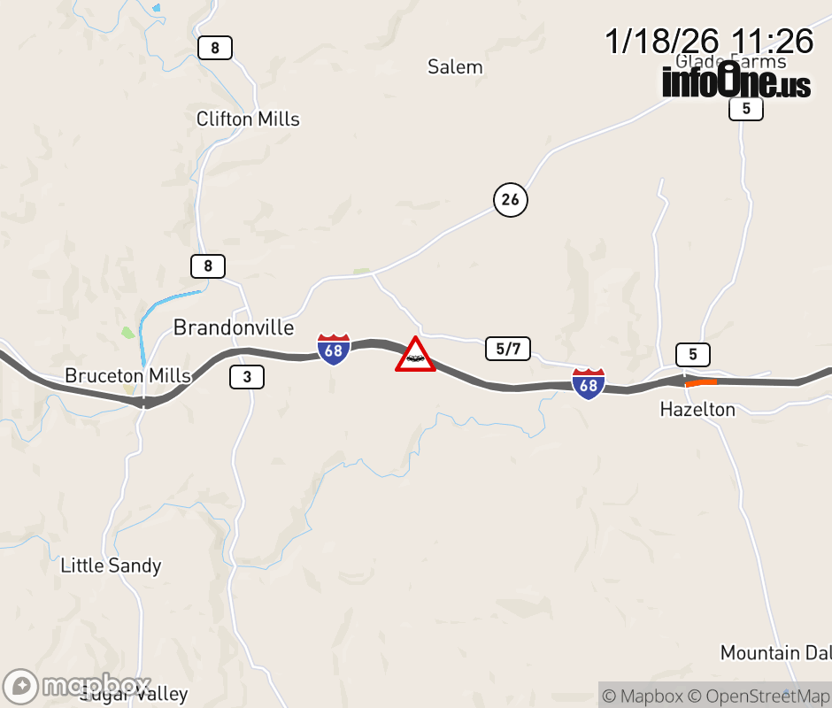 Canceled 1/18/26 1:46 PM Location: I-68 at MM 26.0, WV Accident.