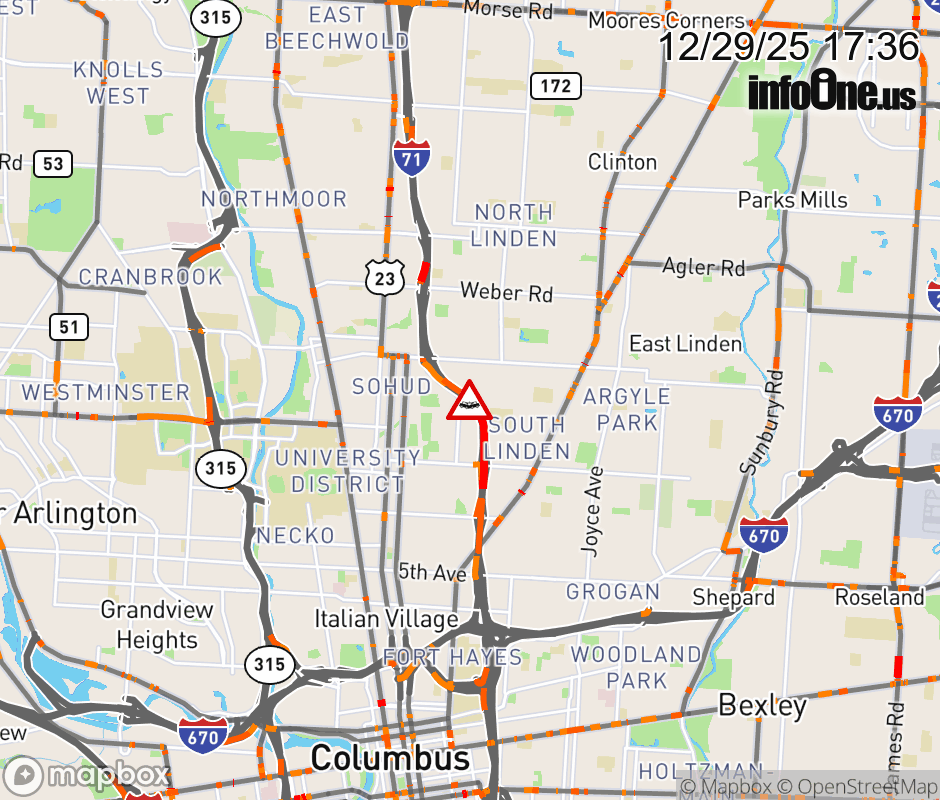 The left lane is blocked on I-71 North beyond 17th Ave, due to a crash. ![]() |