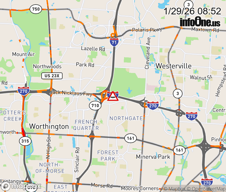 Ramp I-71 North to I-270 East CLOSED because of a crash. ![]() |