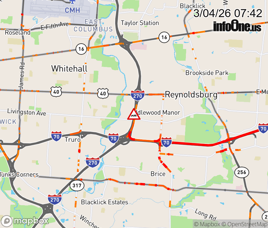 The right shoulder is blocked on I-270 South Collector beyond US-40/E Main St East, due to a disabled vehicle. ![]() |