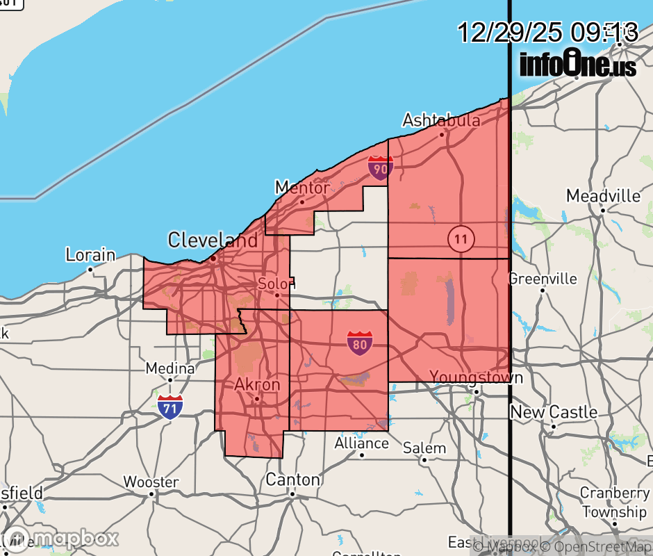 Canceled 12/29/25 1:39 PM Winter Weather Advisory issued December 29 at 9:11AM EST until December 30 at 1:00PM EST by NWS Cleveland OH * WHAT... Lake effect snow expected. Total snow accumulations between 3 and 6 inches. Winds gusting as high as 60 mph. * WHERE... A portion of northeast Ohio. * WHEN... Until 1 PM EST Tuesday. * IMPACTS... Plan on slippery road conditions with slower travel likely. The hazardous conditions could impact the Monday evening and Tuesday morning commutes. Strong winds could cause tree damage. * ADDITIONAL DETAILS... The heaviest snow is expected late Monday afternoon and evening. Snowfall rates may reach 1 inch per hour at times. ![]() |