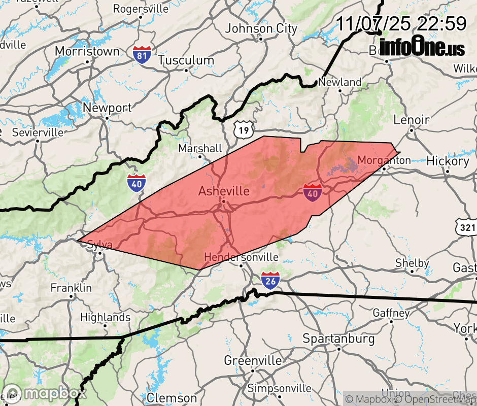 Canceled 11/7/25 11:30 PM Special Weather Statement issued November 7 at 10:58PM EST by NWS Greenville-Spartanburg SC At 1058 PM EST, Doppler radar was tracking strong thunderstorms along a line extending from 6 miles south of Burnsville to 9 miles west of Downtown Asheville to 6 miles east of Sylva. Movement was east at 50 mph. HAZARD...Wind gusts up to 40 mph. SOURCE...Radar indicated. IMPACT...Gusty winds could knock down tree limbs and blow around unsecured objects. Locations impacted include... Downtown Asheville, Marion, Waynesville, Morganton, East Asheville, Arden, West Asheville, North Asheville, Black Mountain, and Mills River. ![]() |