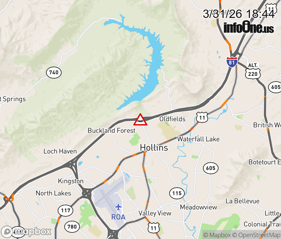 On I-81 at mile marker 146.5 in the County of Roanoke, motorists can expect delays due to a vehicle crash. The north right shoulder is closed. ![]() |