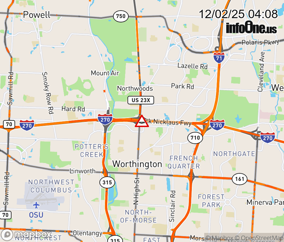 The left shoulder is blocked on I-270 East beyond US-23, due to a crash. ![]() |