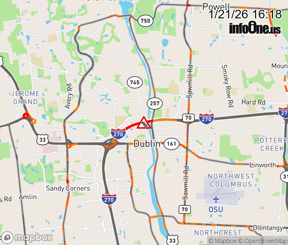 The left lane is blocked on I-270 East beyond US-33/SR-161, due to debris on roadway. Updated: Wed 1/21/26 4:18 PM EST ![]() Updated: Wed 1/21/26 4:18 PM EST |