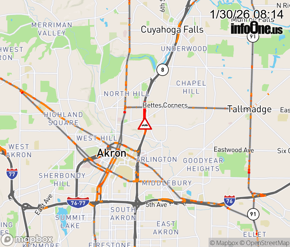 The right lane is blocked on SR-8 South/SR-59 West beyond SR-261/Tallmadge Ave, due to a disabled vehicle. ![]() |