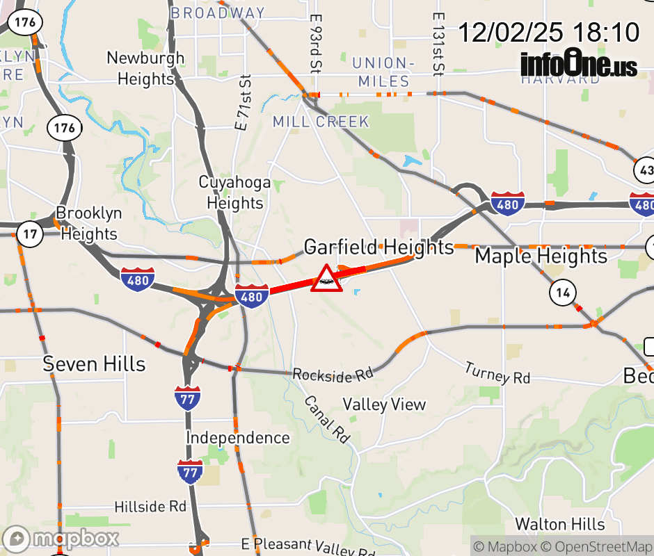 All lanes are blocked on I-480 West Express at Transportation Blvd/E 98th St, due to a crash. Updated: Tue 12/2/25 6:10 PM EST ![]() Updated: Tue 12/2/25 6:10 PM EST |