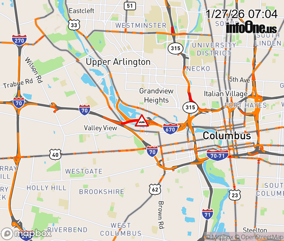The center lane is blocked on I-670 East at I-670, due to a disabled vehicle. ![]() |
