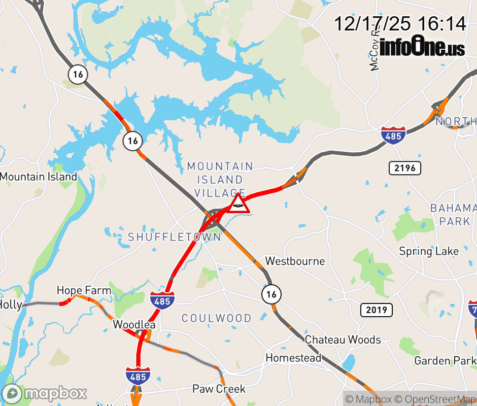 The two left lanes are closed past Exit 16 (NC 16). ![]() |