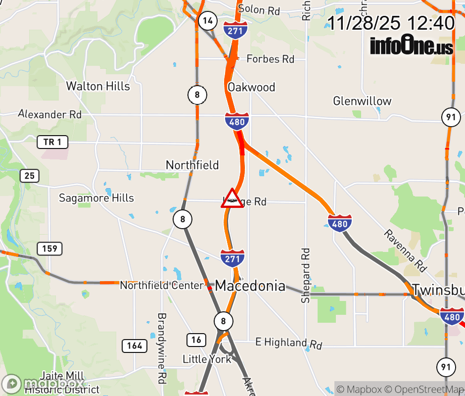 Expect lane closures on I-271 South beyond I-271/I-480 Split, due to a crash. ![]() |