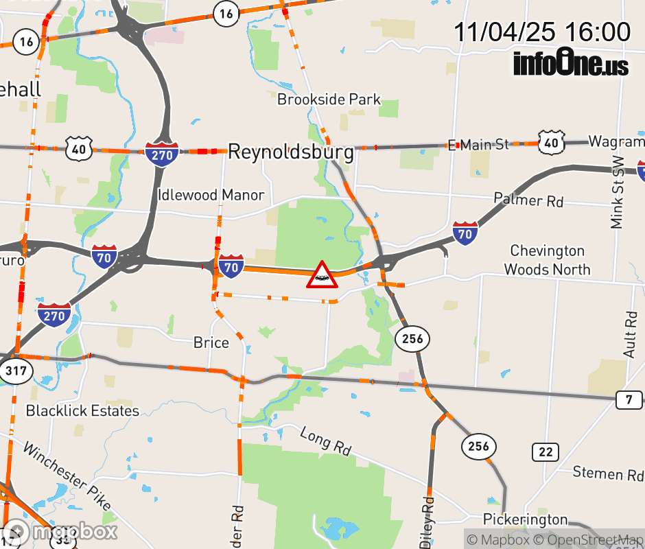 The right shoulder is blocked on I-70 East beyond Brice Rd North, due to a crash. ![]() |
