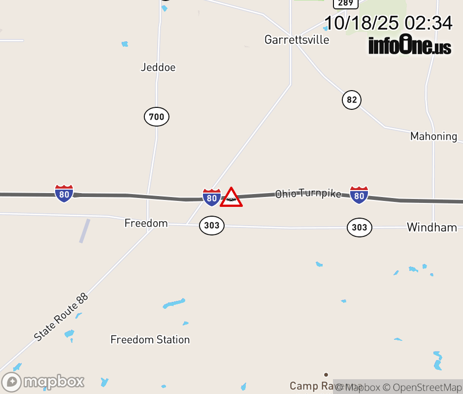Expect lane closures on I-80 West (Ohio Turnpike) beyond SR-5, due to a crash. Updated: Sat 10/18/25 2:34 AM EDT ![]() Updated: Sat 10/18/25 2:34 AM EDT |