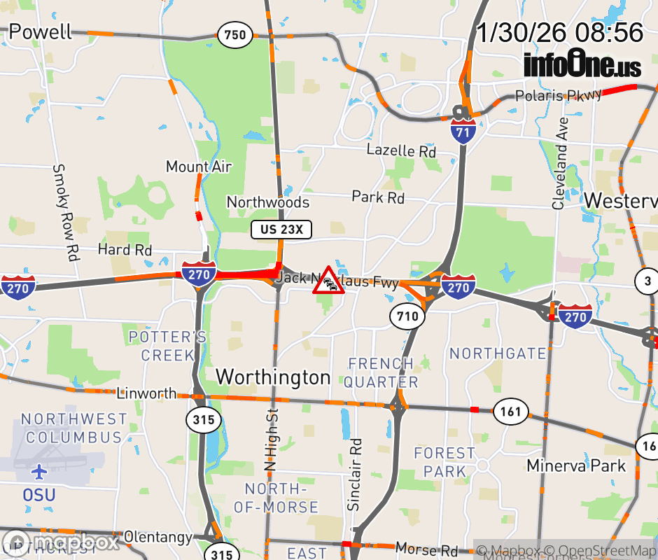 The left lane is blocked on I-270 East beyond US-23, due to debris on roadway. ![]() |