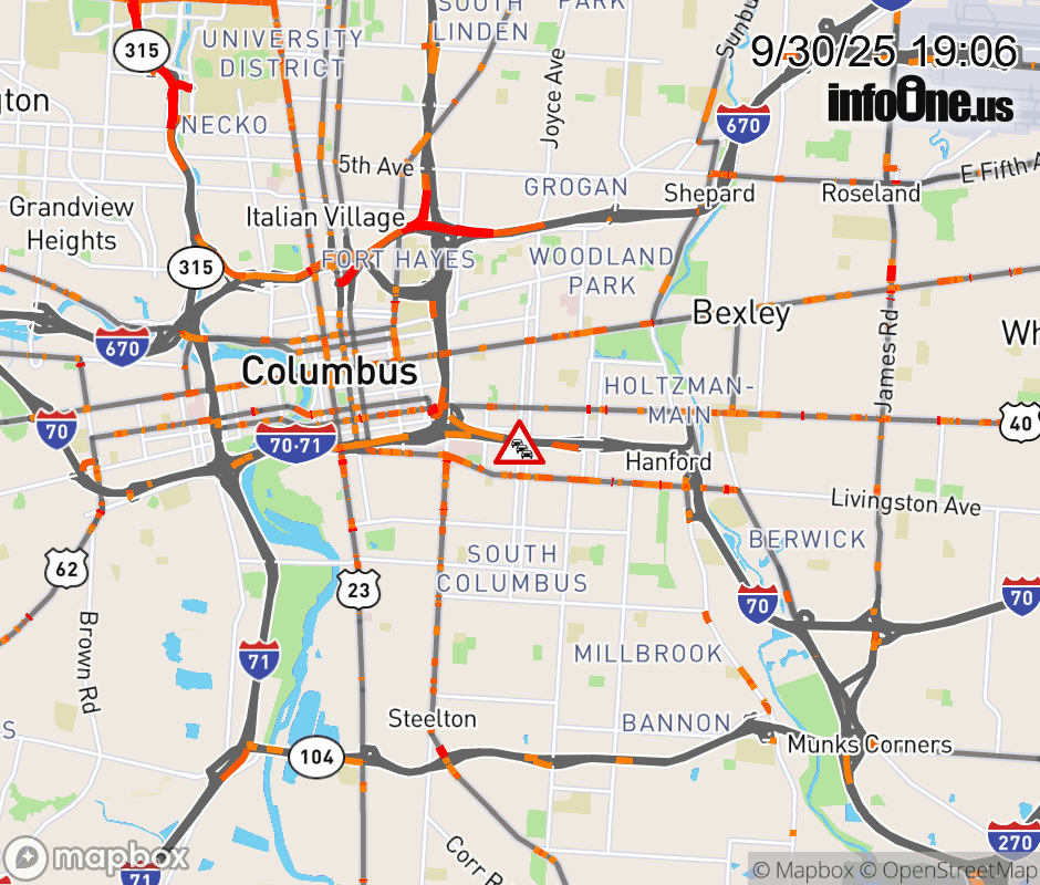 The left lane is blocked on I-70 East beyond E Fulton St, due to repairs/maintenance. ![]() |